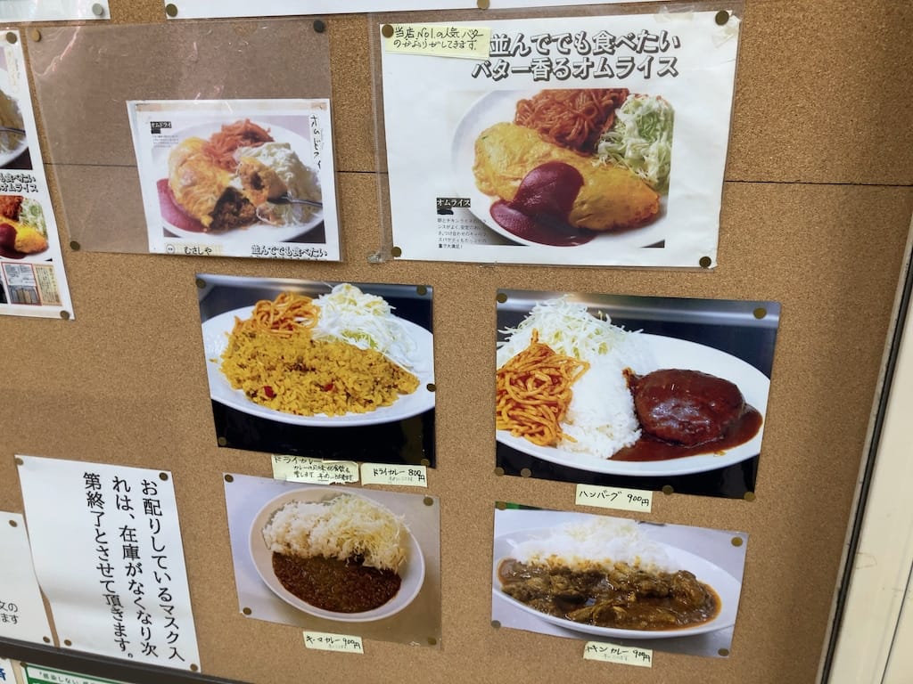 メニューは大きく分けてカレー、ご飯もの、スパゲッティーの3種類。その中でも「オムライス」(チキンライスの卵包み)が1番人気、「オムドライ」(ドライカレーの卵包み)が2番人気です。全商品が良心的な値段でテイクアウトもできるそうです。
