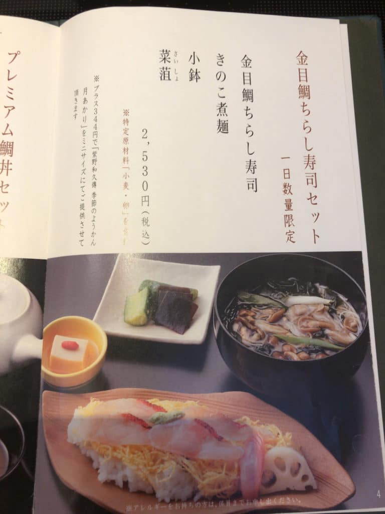 ランチメニュー以外にも「単品メニュー」と「お持ち帰りメニュー」があります。テイクアウトのメニューは15分ほ待つ必要がありますが、待ってでも食べる価値がありそうな寿司のメニューが並んでいます。
