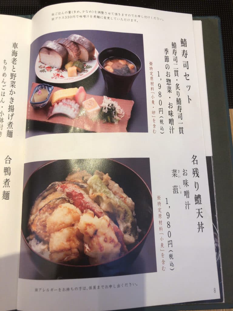 ランチメニューは全部で14ページあり、丼と麺がメインで、価格帯は2,000〜3,000円の間のメニューが多く、少しお高めです。どれもおいしそうで迷ってしまいます。なお、ランチの時間は11〜16時です。
