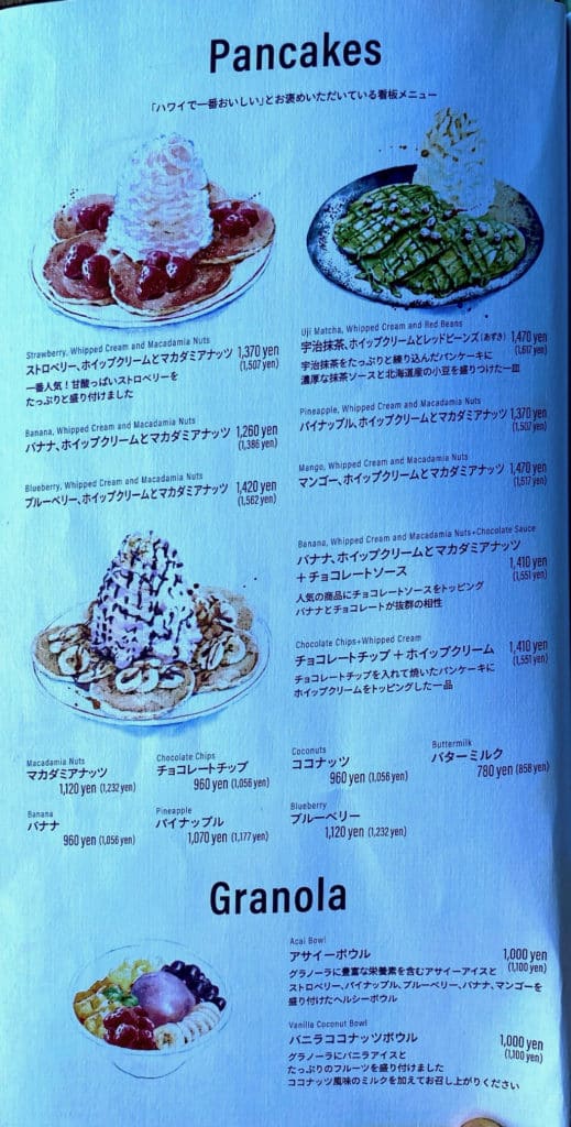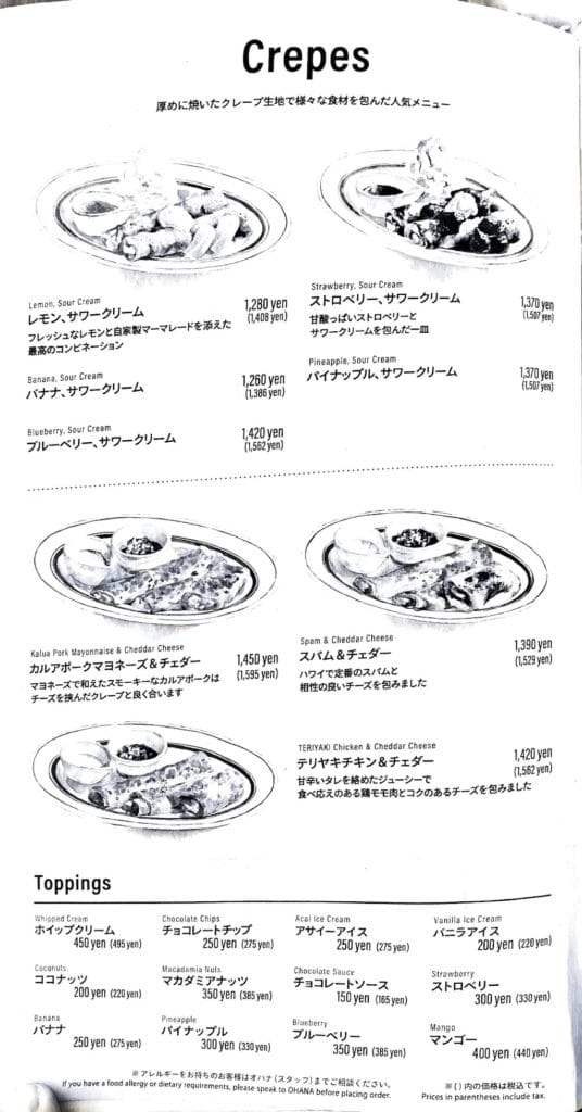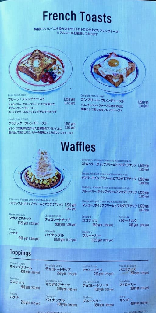 | パンケーキ(バナナ、ホイップクリームとマカダミアナッツ+チョコレートソース) | 1,551円 |