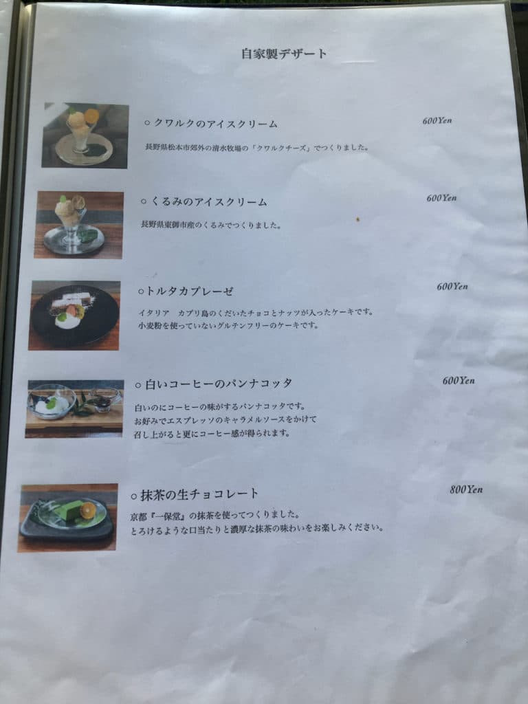 ドリンクメニューには大きく分けるとアルコールの他にミネラルウォーター、ノンアルコールビール、ノンアルコールスパークリングワイン、ソフトドリンク、エンボカ オリジナル ブレンドティー、カフェがあり、さらに5種類のデザートメニューがあります。