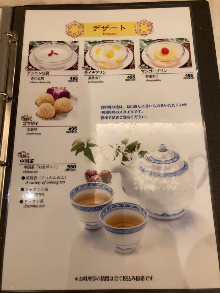 最後はデザートの「杏仁豆腐」。トロッとした杏仁豆腐はマイルドな味わいでさっぱりしています。今回注文したコース料理は全部で10品もあり、量も多かったので全ての皿を完食することができませんでしたが満足度は高いです。