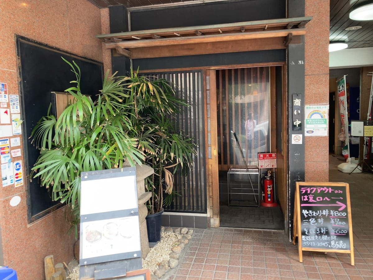 コロナ禍ということもあり最近は多くの飲食店がテイクアウトをやっていますが、こちらのお店もご多分に漏れずテイクアウトをやっています。メニューは「やきとり丼」(税込800円)、「三色丼」(税込700円)、「そぼろ丼」(税込600円)の3種類。テイクアウトのみは裏口から入ります。