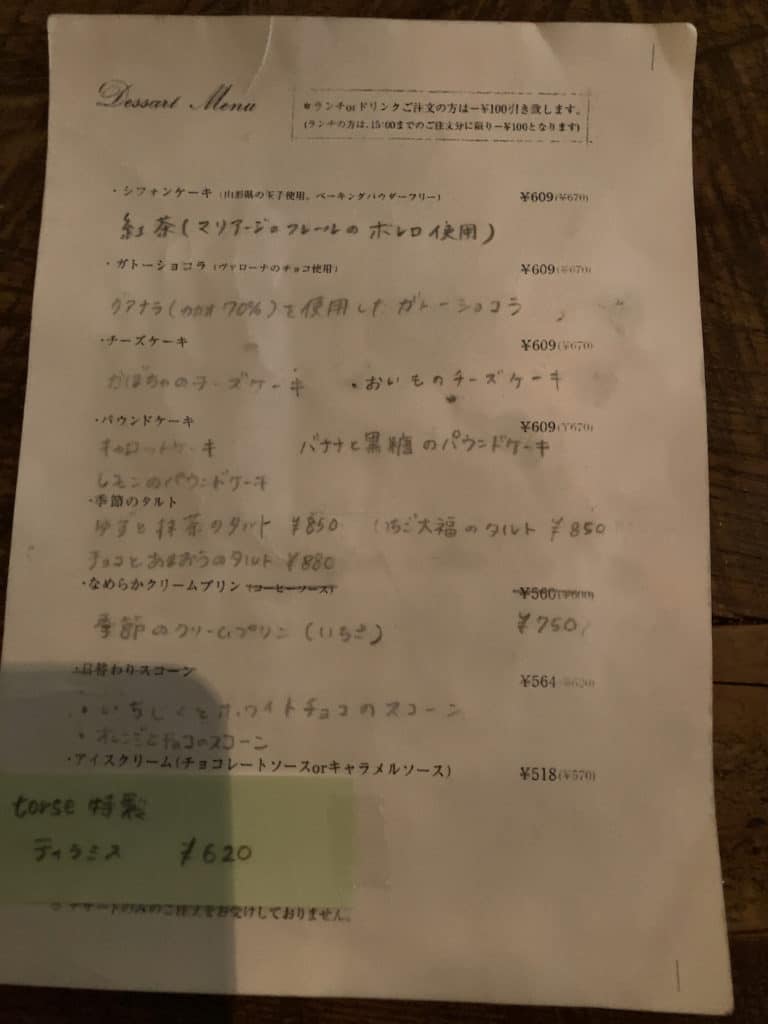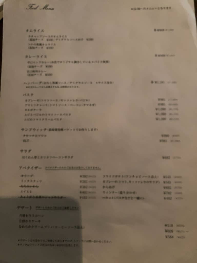 訪問時の営業時間は昼の12時から20時まででラストオーダーが19時です。ランチは12時からでオムライス、カレー、パスタから選べてサラダ、スープ、ドリンク付きで1,100円です。カフェタイムは15時からでドリンクに加えてオムライスの他、ハンバーグ等の用意もあります。オムライスとケーキのテイクアウトもやっているそうです。