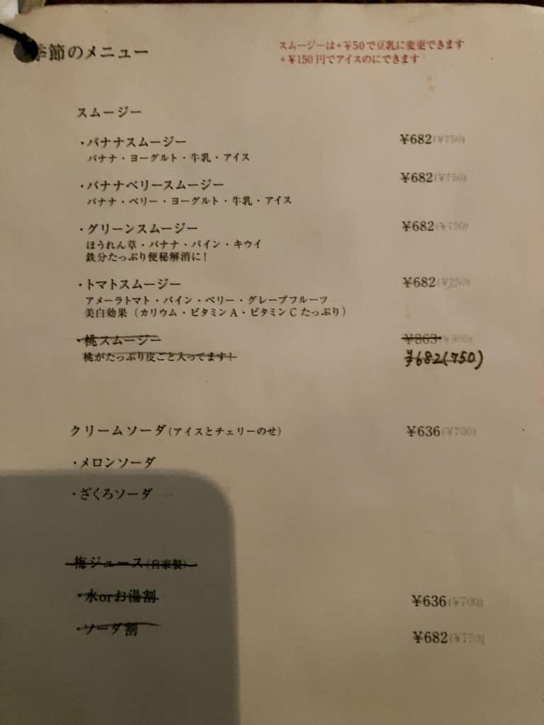 メニューはドリンクも含めると全部で7ページありますが、カフェということもありドリンクだけで5ページもあります。気になったのは季節のメニューのスムージーと種類の豊富な紅茶ですが、今回はカフェオレを注文することにします。