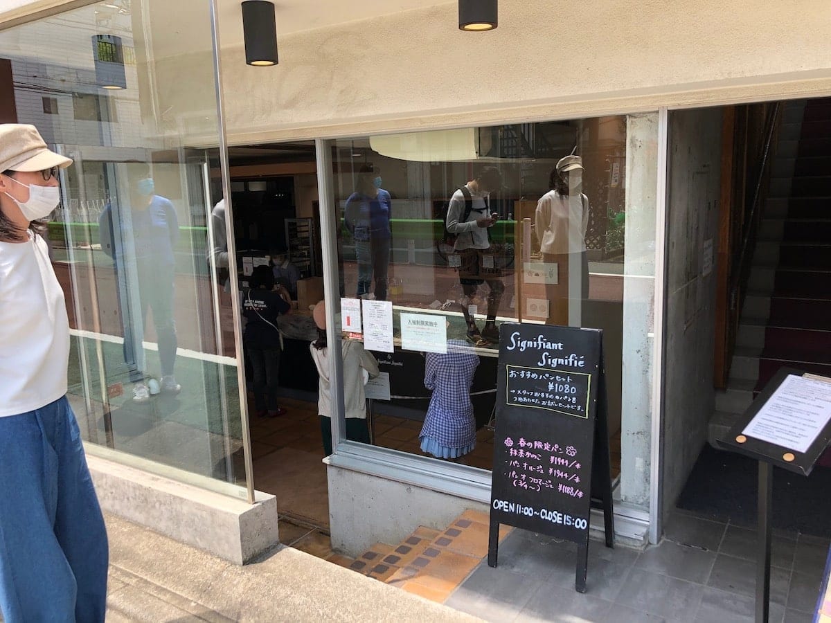 前のお客さんがパンを購入し終えるまで店内の後ろで待機します。